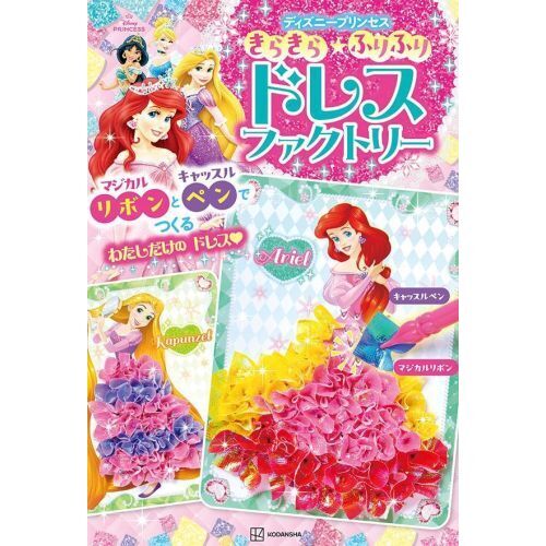 ディズニープリンセスから全く新しい、新感覚の“遊び”が登場!キラキラでカラフルなリボンとラブリーなピンク色のペンで、わたしだけのオリジナルドレスがデザインできちゃう★プリンセスが描かれたボードにある切り込みに、リボンをペンで差し込んで、ドレスをデザイン!好きな色のリボンを自由に選んで、あなただけの素敵なドレスを作ってね!ペンを穴に刺すという指先を使う工程は、集中力や巧緻性も鍛えてくれます。(ペンで紙に穴をあけて絵を描く等の類似した知育教育も実際に行われています。)入っているプリンセスの種類は、全部で5人。人気のアリエル・ラプンツェル・シンデレラ・ベル・ジャスミンです。リボンの色は全部で7色。<遊び方>1:ディズニープリンセスのドレス部分に切り込みが入っているボードを付属の下敷きの上に置きます。2:付属のキラキラなリボンの中から好きな色を選び、切り込み部分に置きます。3:付属のペンの先でリボンを切り込み部分に差し込むことで、ドレスのフリルが出来上がります。2と3の工程を重ねることで、わたしだけのオリジナルのドレスをデザインできる遊びです。<入っているもの>・プリンセスボード(5枚/アリエル・ラプンツェル・シンデレラ・ベル・ジャスミン)・マジカルリボン(複数枚/各7色)・キャッスルペン(ピンク色)・下敷き・遊び方説明書