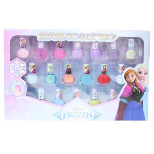 「コスメ雑貨」 アナと雪の女王 グッズ ピールオフネイルアート ディズニー キャラクター はがせるマニキュア18本セット 除光液を使わず簡単に落とせる簡単マニキュア 大人気ディズニーキャラクターグッズにまたまた可愛いnewアイテム登場こちらはリムーバーを使わずにスルッと剥がせる[ピールオフマニキュア]18本セット簡単におしゃれを楽しんでみませんか?ほかにもいろいろあるのでお気に入りを揃えてください。パッケージサイズ:約365x230x40mm(18色セット) かわいい/プレゼント/ギフト/贈り物/誕生日